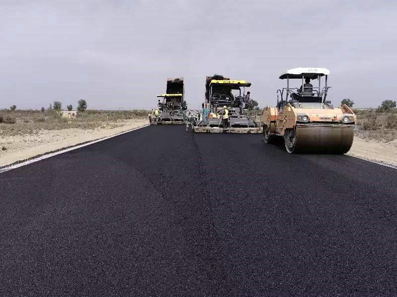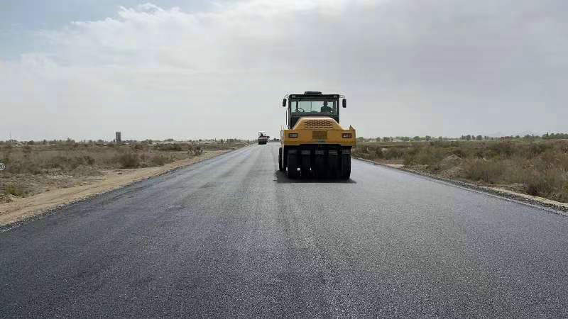 項(xiàng)目主線路面總長16.7km,現(xiàn)場施工人數(shù)共投入20余人,攤鋪機(jī)、壓路機(jī)、水車、自卸車等設(shè)備共投入33臺套。截至目前圖昆公路(三師段)一標(biāo)項(xiàng)目已完成總工程量的90%,道路瀝青面層正在緊鑼密鼓地組織施工。
