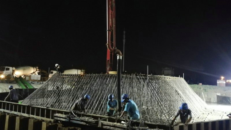 9月2日6時(shí),歷經(jīng)22小時(shí)30 分鐘的連續(xù)奮戰(zhàn),一公司承建的巢湖大橋主塔墩S0承臺(tái)混凝土順利澆筑完成。至此,巢湖大橋主塔墩承臺(tái)混凝土澆筑全部完成,標(biāo)志著這座合肥市地表性建筑的建設(shè)進(jìn)入主塔施工階段,為下一步的順利施工打下堅(jiān)實(shí)的基礎(chǔ)。