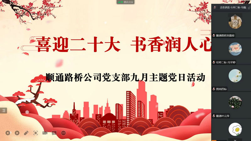 石河子訊(王鳳)順通路橋公司依托新時(shí)代文明實(shí)踐(站)和九月主題黨日內(nèi)容,在普天同慶的國(guó)慶來臨之際,通過線上分享的方式舉辦了“喜迎二十大 書香潤(rùn)人心”讀書分享會(huì)活動(dòng),本次活動(dòng)秉著黨建帶團(tuán)建的新型模式,以“閱讀一本好書,進(jìn)行一次分享,提升一層素養(yǎng),收獲一份快樂”為主線,暢談各位青年工作者的讀書心得,進(jìn)一步激發(fā)廣大黨員干部、團(tuán)員青年、群眾的愛黨愛國(guó)熱情,領(lǐng)悟黨的根本宗旨和初心使命,不斷從讀書學(xué)習(xí)成果中汲取新的智慧和力量。