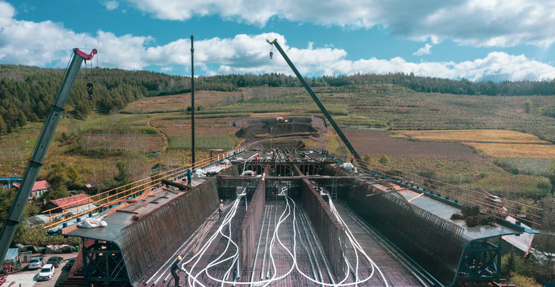 參建的50余名職工晝夜不停搶進(jìn)度,嚴(yán)格落實(shí)標(biāo)準(zhǔn)化作業(yè),強(qiáng)化施工過(guò)程中的安全質(zhì)量卡控,重點(diǎn)把握線性控制,緊盯振搗、密實(shí)度等關(guān)鍵環(huán)節(jié)。項(xiàng)目主管領(lǐng)導(dǎo)帶領(lǐng)技術(shù)人員全程跟班指導(dǎo)作業(yè),保質(zhì)保量完成了澆筑施工任務(wù),為大橋后續(xù)的A、C節(jié)段施工奠定了基礎(chǔ)。