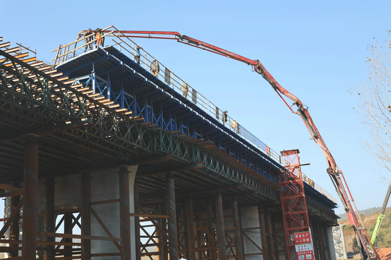 為此,承建施工任務(wù)的中鐵二十三局集團(tuán)沈白高鐵項(xiàng)目部,在混凝土澆筑過(guò)程中,克服橋梁結(jié)構(gòu)形式復(fù)雜、大體積混凝土澆筑質(zhì)量要求高、澆筑作業(yè)時(shí)間長(zhǎng)、高空作業(yè)安全風(fēng)險(xiǎn)疊加、施工難度大等重重困難。
