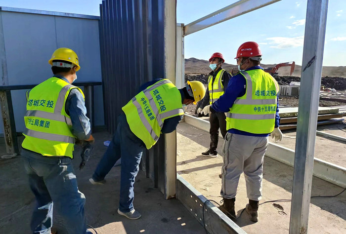 達(dá)爾布特防疫檢查站地理位置險要,建成對塔城地區(qū)防疫實施意義重大。建設(shè)期間,塔城地區(qū)地委行署領(lǐng)導(dǎo)曾多次帶隊趕往現(xiàn)場檢查現(xiàn)場進(jìn)展,數(shù)十小時的晝夜鏖戰(zhàn)并沒有消磨援建人員的意志,反而使他們越戰(zhàn)越勇。“感謝中鐵十五局的援建,在這樣條件艱苦、壓力巨大的情況下,你們團(tuán)結(jié)一心、挺身逆行的精神我們?nèi)侨嗣穸紩懹洝?rdquo;10月11日下午,在檢查醫(yī)護(hù)人員住所時,塔城地區(qū)地委行署副專員托里肯感動地說道。