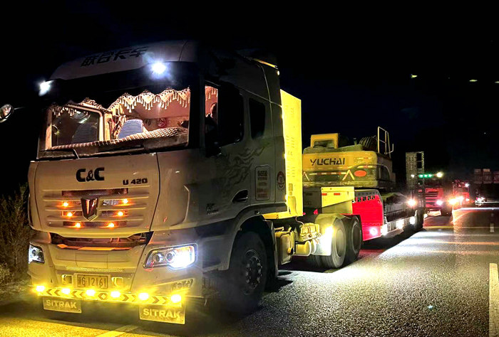 拖車運(yùn)往現(xiàn)場 柴桂林?jǐn)z櫛風(fēng)沐雨,彰顯擔(dān)當(dāng)