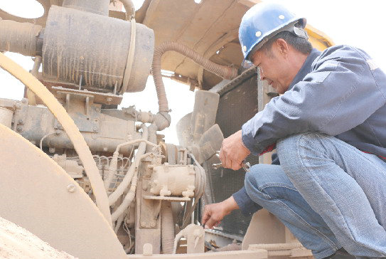 設(shè)備管理人員對(duì)挖掘機(jī)進(jìn)行安全檢查