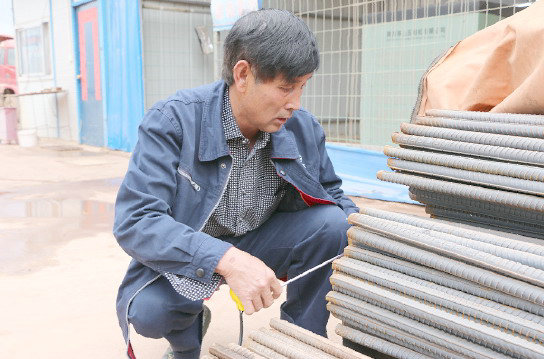 物資管理人員對(duì)鋼材規(guī)格進(jìn)行檢查