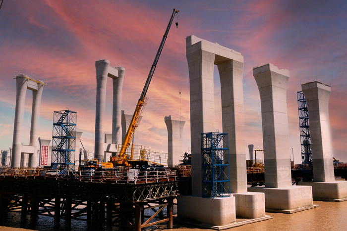 待卸的運(yùn)梁船 陳興銀攝
