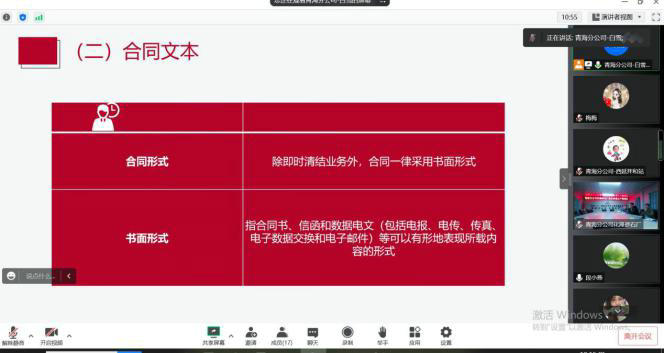 分公司以提升職工需求為出發(fā)點(diǎn),多角度出發(fā),采取領(lǐng)導(dǎo)班子、各部室負(fù)責(zé)人及骨干人員內(nèi)部培訓(xùn)方式,針對工作中的重點(diǎn)、難點(diǎn)、弱點(diǎn)和職工關(guān)注的問題制定培訓(xùn)學(xué)習(xí)計(jì)劃。近一個月以來,已開展線上培訓(xùn)活動5次,分別從合同審批管理、合同日常管理、成本管理、外聘人員管理、機(jī)械設(shè)備管理、冬季施工安全質(zhì)量管理以及拌和站竣工報(bào)告編制等方面展開培訓(xùn),并對工作中遇到的問題進(jìn)行討論,在學(xué)習(xí)文件精神及理論知識的同時(shí),結(jié)合實(shí)際工作經(jīng)驗(yàn),進(jìn)一步提升各單位的管理能力以及職工的工作能力。