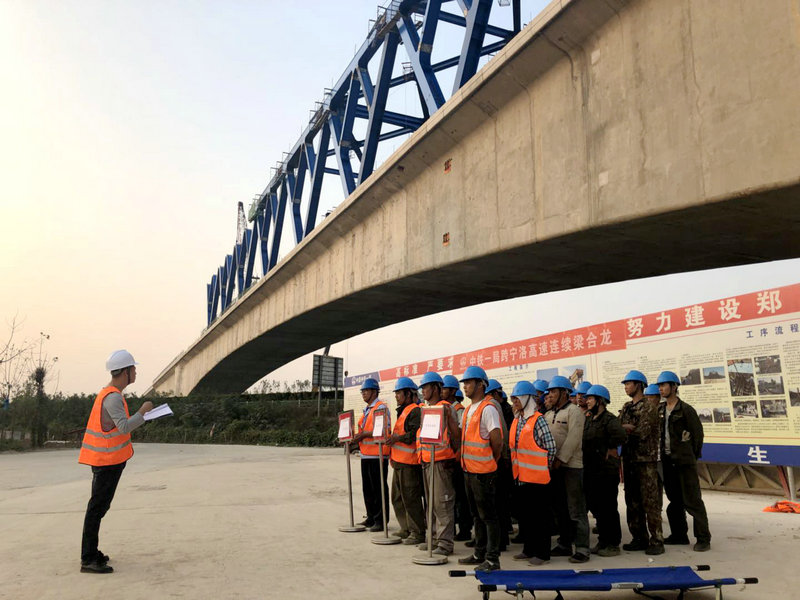 中國鐵路建設(shè)工程網(wǎng)訊(通訊員:范通帥)10月6日,中鐵一局鄭阜鐵路項目部在項目承建沈界1號特大橋跨寧洛高速鋼桁加勁連續(xù)梁鋼梁拼裝現(xiàn)場開展了一場高空墜落應(yīng)急演練,目的是提高員工的風(fēng)險風(fēng)范意識,在危險發(fā)生時能有效組織、積極開展相關(guān)救援行動。
