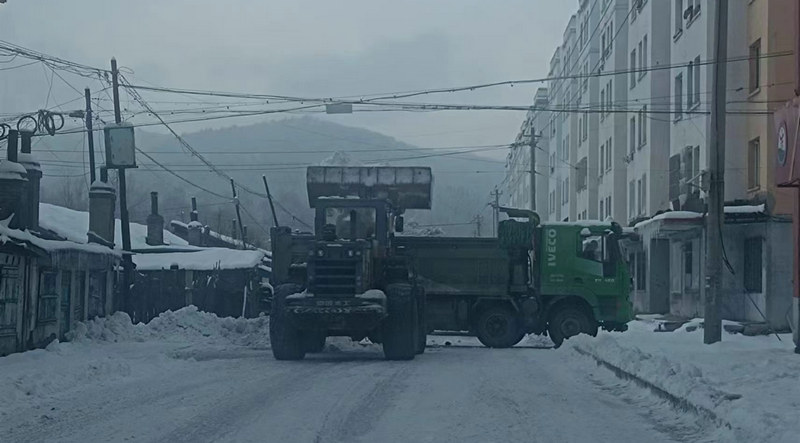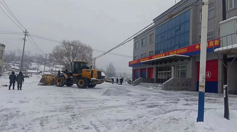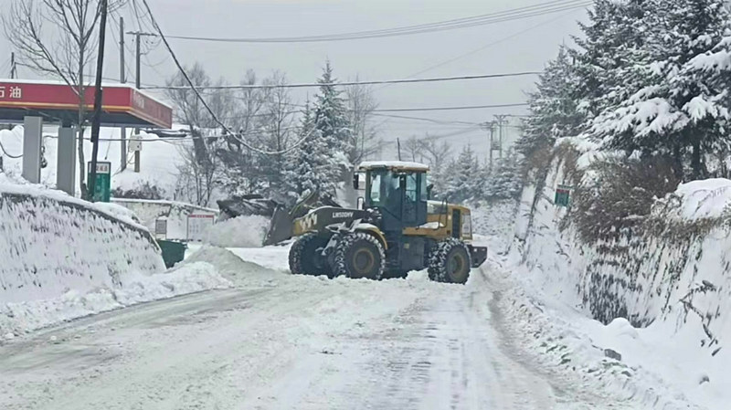 雨雪無情、央企有愛。緊急時(shí)刻,正在當(dāng)?shù)厥┕さ闹需F二十三局集團(tuán)沈白高鐵項(xiàng)目部一分部,積極履行央企的社會(huì)責(zé)任,以雪為令,第一時(shí)間啟動(dòng)極端天氣應(yīng)急預(yù)案,調(diào)集裝載機(jī)、自卸運(yùn)輸車等機(jī)械設(shè)備10余臺(tái),集結(jié)除雪隊(duì)伍30余人,立即奔赴灣溝鎮(zhèn)內(nèi)人員密集的主要交通地段、路口及社區(qū)、加油站等公共區(qū)域除雪搶險(xiǎn)。在寒風(fēng)和漫天飛雪中,機(jī)聲轟鳴的裝載機(jī)艱難地行進(jìn)在除雪路面上,厚厚積雪隨之被魚貫往來的自卸運(yùn)輸車裝車外運(yùn)。他們?cè)谌σ愿俺┍Mǖ耐瑫r(shí),還要協(xié)助疏導(dǎo)交通引導(dǎo)居民安全出行,確保降雪期間的道路安全暢通。