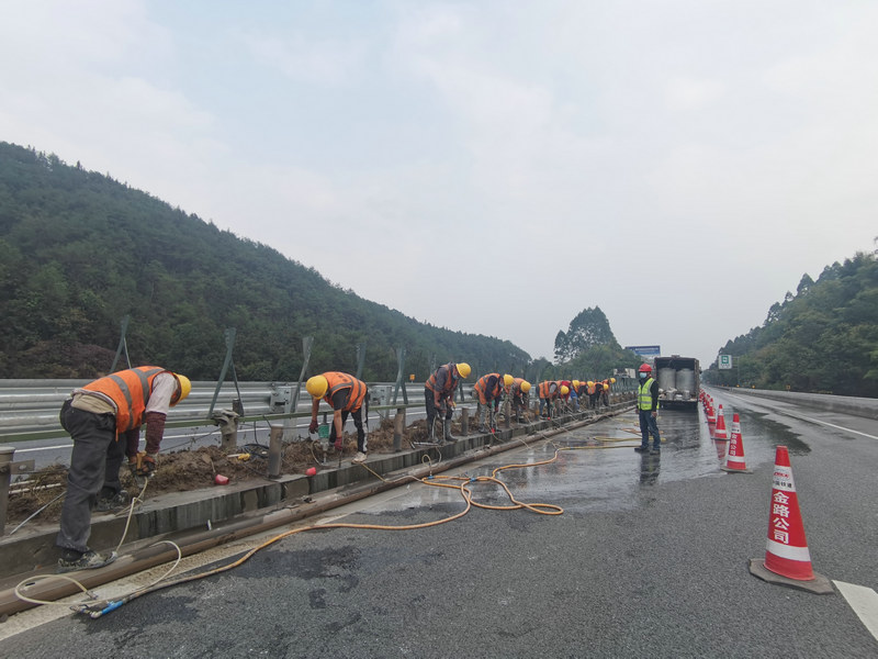在各交安項(xiàng)目鏖戰(zhàn)大干的同時(shí),金路公司各養(yǎng)護(hù)項(xiàng)目也絲毫沒(méi)有因疫情而懈怠生產(chǎn)。為保證項(xiàng)目施工如期進(jìn)行,渝西養(yǎng)護(hù)中心的工人們住進(jìn)了銅梁北收費(fèi)站,實(shí)行“兩點(diǎn)一線”閉環(huán)管理,全力沖刺渝遂高速護(hù)欄改造工程。渝東養(yǎng)護(hù)中心則巧妙利用疫情期間部分路段不能上路作業(yè)的時(shí)機(jī),復(fù)盤(pán)養(yǎng)護(hù)工作管理中存在的不足,見(jiàn)縫插針地進(jìn)行查漏補(bǔ)缺,促進(jìn)項(xiàng)目管理更上一層樓。