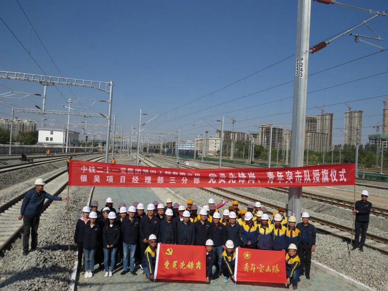 “黨員先鋒崗”、“青年突擊隊”代表鄭重表態(tài),表示謹記先鋒隊和突擊隊的責(zé)任,宣揚團結(jié)互助、攻堅克難的模范精神,以昂揚的斗志、飽滿的熱情,安全優(yōu)質(zhì)的完成任務(wù),為實現(xiàn)銀吳鐵路建成通車目標而努力拼搏。