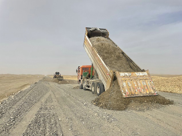 項目部召開研判會,對復(fù)工復(fù)產(chǎn)、冬季施工作業(yè)進(jìn)行專題研究部署。繼續(xù)嚴(yán)格落實疫情防控常態(tài)化措施,確保人員身體健康和各工序聯(lián)動運轉(zhuǎn)。在項目現(xiàn)場,運料車、灑水車往來穿梭,基層戈壁料填筑作業(yè)和儲備來年用料同步進(jìn)行,日益增加的自卸車追趕進(jìn)度與灑水車降塵抑灰保安全同步開展,各環(huán)節(jié)“復(fù)工復(fù)產(chǎn)”井然有序。