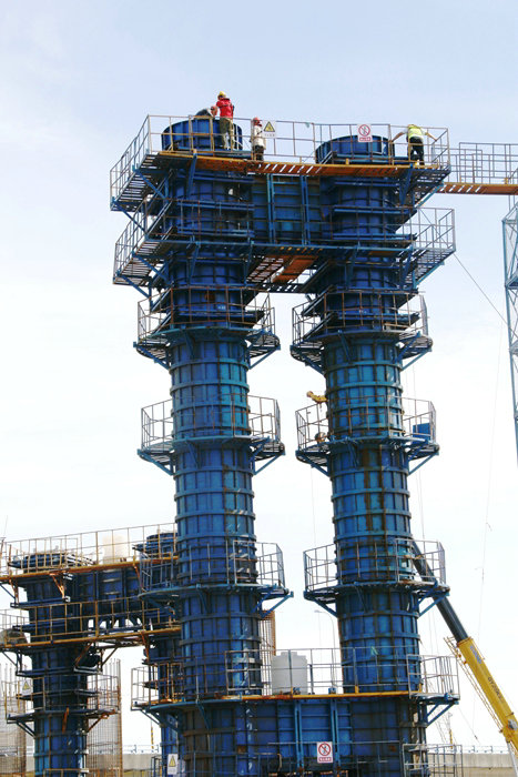 在匝道橋墩身施工中,該項目部采取從匝道的核心向外輻射,從一兩個點到大面積開花,從東到西,從南到北,集中人力、設(shè)備、管理、技術(shù)等優(yōu)勢資源,展開一場“你追我趕爭第一、杭甬復(fù)線展風(fēng)采”如火如荼的勞動競賽熱潮,每個施工隊都在上緊的“鏈條”上,不敢松懈,施工進度不斷加快,一座座橋墩魔術(shù)般聳立在海面上,G匝道率先完成澆注任務(wù),其余匝道橋墩先后順利封頂,捷報頻傳。