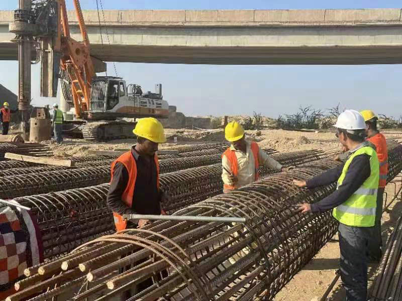 日前,北新路橋集團(tuán)國際工程事業(yè)部巴基斯坦 N55公路項(xiàng)目在原N55線路的基礎(chǔ)上,進(jìn)行了左側(cè)、右側(cè)及部分全部面的加寬改造,變雙向2車道為雙向4車道。截止目前,工程形象進(jìn)度已完成79%。目前正在進(jìn)行K94+200-K99+100段的原地面清表及原地面壓實(shí)、路基填筑等路基工程,K99+200-K100+400瀝青面層攤鋪等路面工程;K97+860橋2號橋的橋梁場地清理、樁基礎(chǔ)鋼筋籠的綁扎工作。圖為N55公路項(xiàng)目K97公里處正在進(jìn)行橋樁基鋼筋籠綁扎施工(拍攝:周繼鵬)。