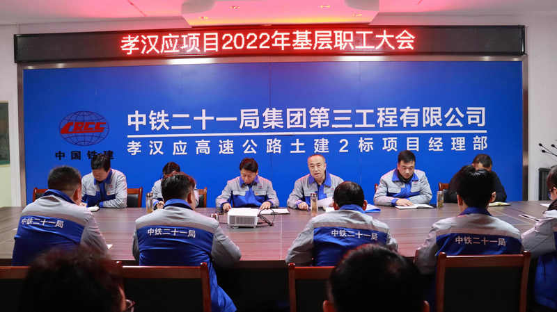 (圖為中鐵二十一局三公司孝漢應(yīng)項(xiàng)目開(kāi)展2022年基層職工大會(huì))