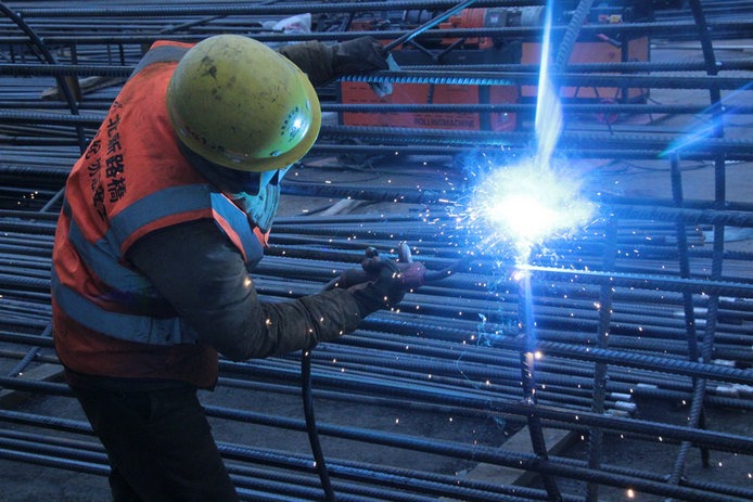 圖為 北新路橋集團(tuán)四川分公司宿固5標(biāo)項(xiàng)目作業(yè)人員正在進(jìn)行鋼筋籠焊制,全力加快沱河大橋樁基施工進(jìn)度,截至目前,完成樁基澆筑123根。 徐德蓉?cái)z