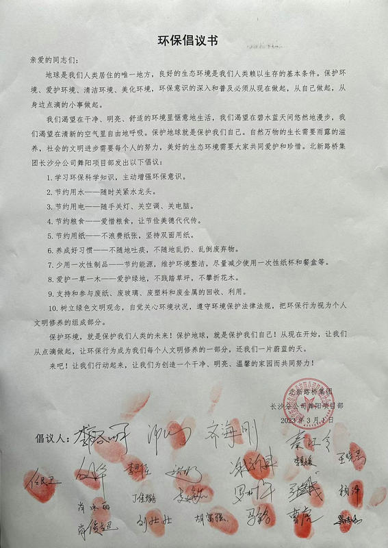 3月1日,北新路橋集團(tuán)長(zhǎng)沙分公司舞陽(yáng)片區(qū)項(xiàng)目在項(xiàng)目駐地旁開展志愿植樹活動(dòng),志愿者們分工協(xié)作、相互配合,挖穴扶苗、夯土澆水,每個(gè)步驟循序漸進(jìn),每道工序都做得認(rèn)真仔細(xì)。此次活動(dòng)不僅種下一片愛心,也為當(dāng)?shù)卦鎏砹艘环莪h(huán)保綠,活動(dòng)結(jié)束后,該項(xiàng)目全體職工簽定了環(huán)保倡議。