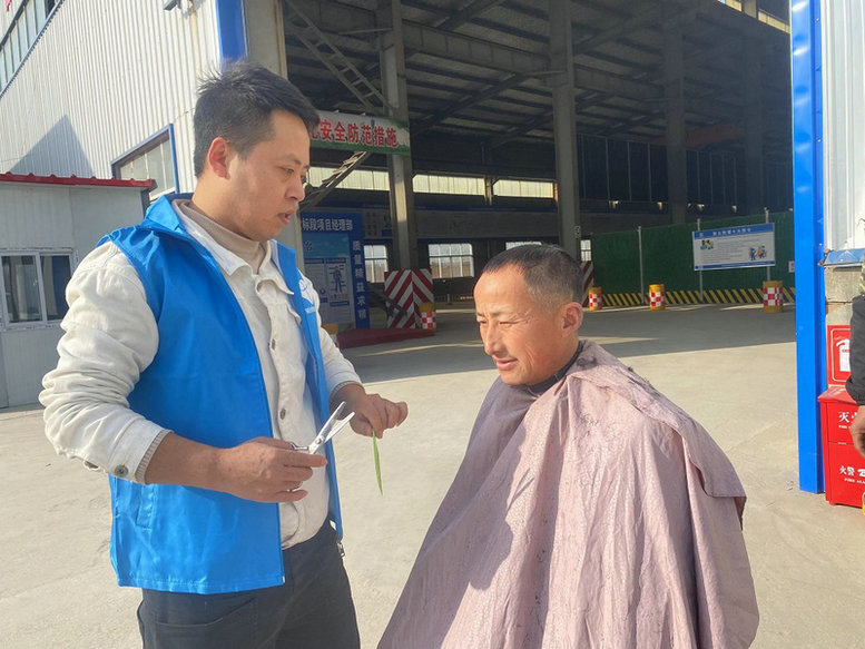 活動現(xiàn)場,項目工會為一線民工送上愛心水果、糧油等慰問物資,慰問工友們保重身體,平安健康。愛心現(xiàn)場設置在攪拌站和鋼筋場兩個理發(fā)位,從民工實際需求出發(fā),親切詢問工友喜歡的發(fā)型,為數(shù)十名工友進行“愛心義剪”,義剪活動不僅節(jié)省了工友在勞動期間外出的時間,還切實把關心和溫暖送到工人的心坎上,讓他們感受到項目大家庭的溫暖。剪刀飛舞空中,舊發(fā)散落地下,一個個工友面貌煥然一新、精神煥發(fā),熱情周到的服務贏得農(nóng)民工師傅們滿意的笑容。“沒想到在工地還能享受到這個服務,真誠地感謝項目對我們農(nóng)民工的關心與厚愛。”四川籍農(nóng)民工張師傅笑著說道。