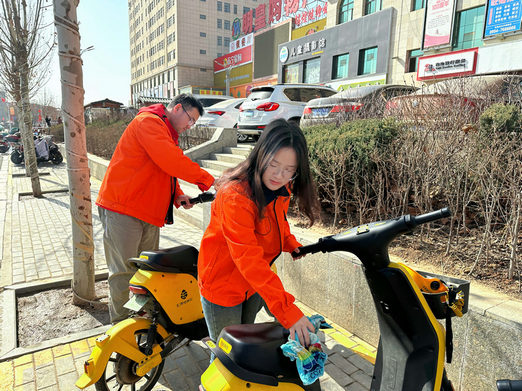 項目志愿者們自行配備了掃把、水盆、抹布、鐵鏟、夾鉗、竹竿、垃圾袋等工具,分別前往茹河周邊區(qū)域、繁華區(qū)的共享單車固定停放點(diǎn)、雷河灘公園開展清掃環(huán)境衛(wèi)生活動。大家分工協(xié)作,一小隊手持掃把、夾鉗、鐵鏟撿拾草叢及道路垃圾、打撈河道和濕地白色污染物,另一小隊端著盆、拿著消毒酒精和衛(wèi)生工具,擦洗共享單車、兒童樂園設(shè)施、各種櫥窗、歇息桌椅板凳、垃圾桶等。他們不怕臟、不怕累,干得不亦樂乎,通過一個下午的勞動,周邊環(huán)境煥然一新。