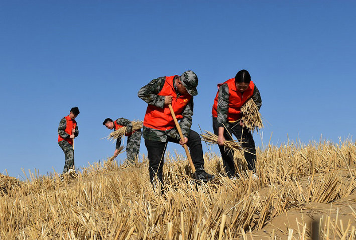 38團(tuán)訊(文/李秀梅 圖/孫宛玲)近日,塔克拉瑪干沙漠南緣有一抹“志愿紅”正在緊張有序的參與到防風(fēng)固沙草方格扎制工作中。據(jù)悉,自北新路橋國際工程事業(yè)部第二師38團(tuán)塔中沙漠公路項(xiàng)目開工建設(shè)以來,二師片區(qū)青年員工自發(fā)組建了一支青年志愿服務(wù)隊(duì),結(jié)合項(xiàng)目實(shí)際情況,持續(xù)開展防風(fēng)治沙生態(tài)文明建設(shè)活動(dòng)。為進(jìn)一步弘揚(yáng)雷鋒精神,傳承紅色基因,北新路橋集團(tuán)國際工程事業(yè)部二師片區(qū)以“學(xué)雷鋒志愿服務(wù)”為抓手,組織青年志愿服務(wù)隊(duì)到沙漠進(jìn)行草方格扎制,為防風(fēng)固沙貢獻(xiàn)青春力量。