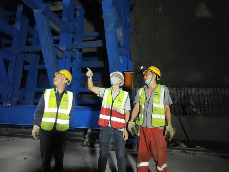二工區(qū)工區(qū)長(zhǎng)龔利民(中)二襯臺(tái)車拼裝技術(shù)指導(dǎo)