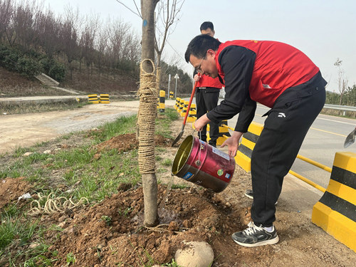李家河復線工程項目部職工在項目副書記帶領下組成“青年突擊隊”開展了以“美麗工地,魅力藍田”為主題的義務植樹活動。3月11日上午上午8:00,大家準時趕到項目將軍嶺工區(qū)門口,分配好任務后,職工們各自來到自己的任務區(qū)開展植樹,大家配合默契,挖坑培土、扶樹澆水,一氣呵成,一棵棵新栽下的樹木傲然挺立,在和煦的微風中煥發(fā)出一種向上的生命力,象征著建安職工們意氣風發(fā)、昂揚向上的精神。