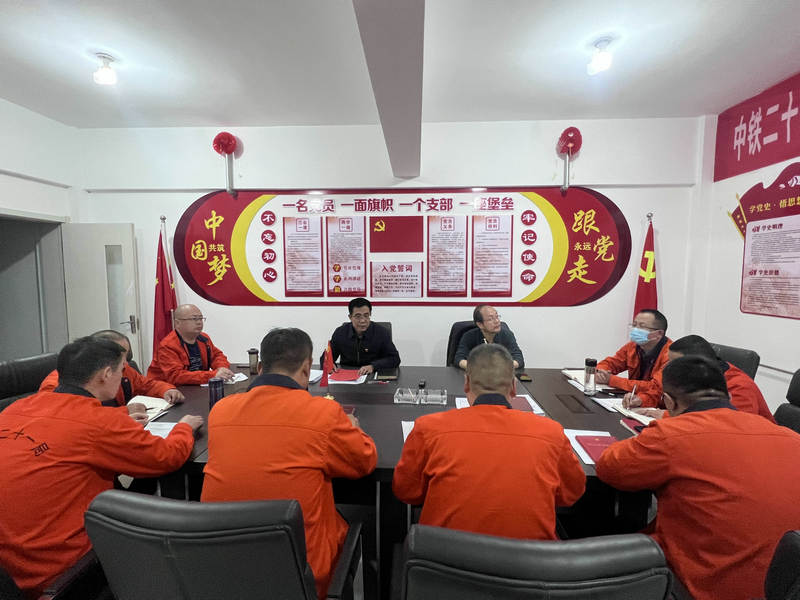 3月11日,中鐵二十一局四公司銀昆高速公路LJ12-2標項目黨支部組織召開2022年度組織生活會,公司黨委委員、副總經(jīng)理、總工程師黃君洲,安全監(jiān)督部相關人員到會指導。