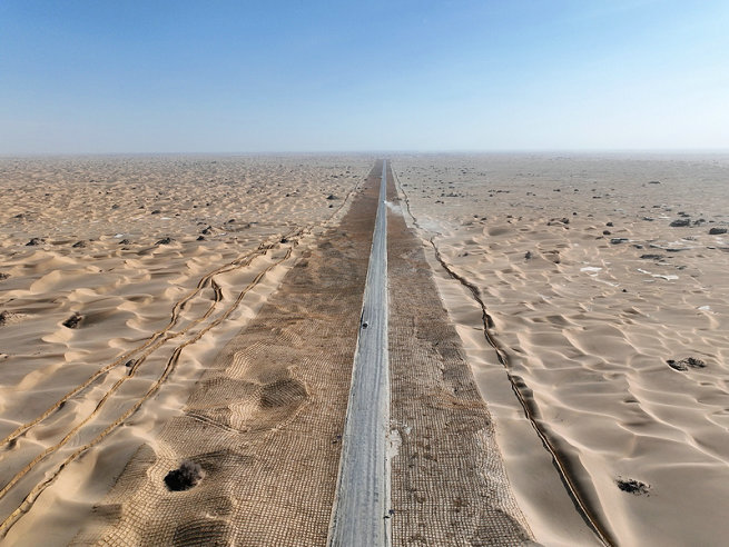 38團(tuán)訊(通訊員 王敏慧)植樹(shù)節(jié)來(lái)臨之際,正是春季防風(fēng)治沙、植樹(shù)造林的關(guān)鍵時(shí)期。北新路橋國(guó)際工程事業(yè)部第二師38團(tuán)至塔中沙漠公路項(xiàng)目搶抓時(shí)節(jié)組織施工隊(duì)伍開(kāi)展草方格沙障治沙施工,不斷向沙漠腹地挺進(jìn),在保護(hù)生產(chǎn)建設(shè)安全的同時(shí),為后續(xù)種植防風(fēng)固沙綠植建立“溫床”。