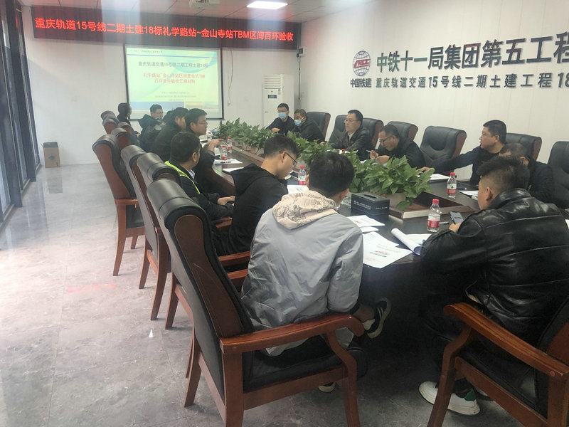 3月26日下午,中鐵建重慶軌道交通15號線二期土建工程總承包部18標項目部組織重慶市質(zhì)量監(jiān)督總站、建設(shè)單位、勘察單位、設(shè)計單位、監(jiān)理單位、第三方監(jiān)控量測單位、質(zhì)量檢測單位、第三方測量單位、施工監(jiān)測單位和總承包單位召開禮學(xué)路站~金山寺站TBM區(qū)間右線百環(huán)驗收會議,結(jié)合驗收小組現(xiàn)場踏勘、施工單位和監(jiān)理單位相關(guān)資料、手續(xù)核查及各單位的驗收意見,重慶市質(zhì)量監(jiān)督總站宣布禮學(xué)路站~金山寺站TBM區(qū)間右線百環(huán)首件驗收通過,并準予在15號線二期全線推廣實施。