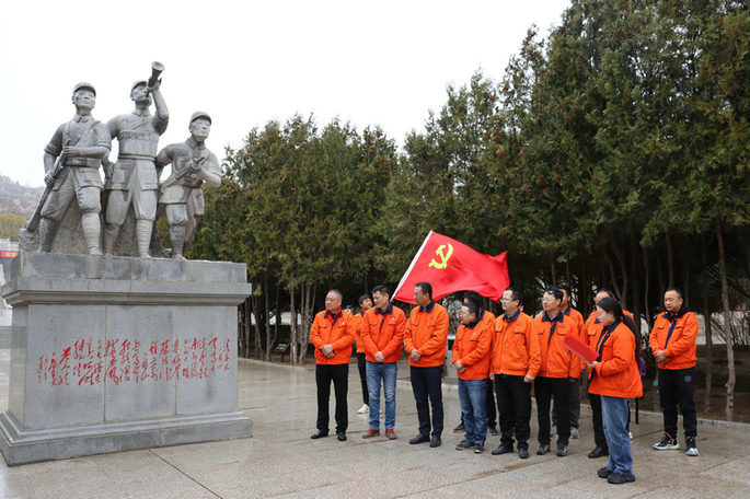 寒風(fēng)似刀,雨雪如鹽,天空仿佛也在為在此安睡的烈士英靈默哀。吊唁廣場,佇立于烈士墓群前的雕像下,黨支部副書記帶領(lǐng)全體黨員復(fù)誦《清平樂·六盤山》,了解了“六盤山上高峰,紅旗漫卷西風(fēng)”的來歷。大家的心情肅穆、莊嚴、寧靜,耳邊聆聽著講解員和黨支部副書記講述異常激烈艱苦的任山河戰(zhàn)役,不禁勾起了對那段歷史的回望以及對那場戰(zhàn)役中犧牲烈士的哀思。