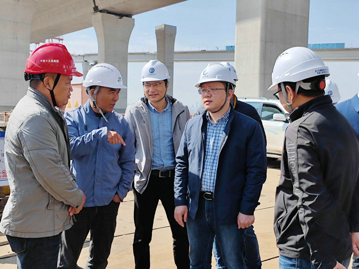 上午9點,王迎春來到濱?;ネ?,聽取了項目部常務副經(jīng)理喬繼保關(guān)于濱海互通規(guī)模、概況和開工以來完成棧橋、樁基、橋墩、架梁等多個節(jié)點目標等情況,并就目前施工進展和下一步架梁上跨金塘大橋的節(jié)點作了介紹。王迎春查看了履帶吊、架橋機正在架梁作業(yè)的場面,以及卸梁站緊張有序地分步驟卸梁、運梁的情景。隨后登上D匝道20多米高的橋面,認真查看了盡收眼底的互通全貌,并沿著數(shù)百米長的橋面從東到西,對橋面鋼筋網(wǎng)的鋪設、混凝土的澆筑、防護欄等逐一檢查,并向業(yè)主、監(jiān)理、項目部人員詢問施工過程的一些細節(jié)。他說:“從這條匝道可以看出整個互通的施工質(zhì)量,十五局是一支技術(shù)力量雄厚的隊伍。”根據(jù)目前的施工推進情況,他提出四點要求:一是戒驕戒躁、再接再厲,越是后期越要嚴把質(zhì)量關(guān),打造省部級以上優(yōu)質(zhì)工程是業(yè)主和十五局共同的心愿,要打好攻堅戰(zhàn)。二是下一步跨金堂大橋架梁,安全風險高,措施要先行,每個環(huán)節(jié)考慮要縝密,從思想上要高度重視,想在前,排除各種隱患,才能保證施工安全,萬萬不可粗心大意和存有僥幸心理。三是把勞動競賽活動搞得轟轟烈烈、有聲有色,這樣對調(diào)動各方面積極性、推進各工序施工會起到促進作用。四是要把現(xiàn)有人力、財力、物力等各種資源優(yōu)化到最佳,圍繞工期目標強化管理,責任到人,才能實現(xiàn)總體目標。