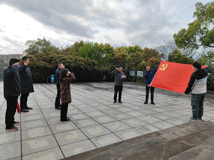 該項(xiàng)目部11名黨員懷著沉重的心情向雄偉的紀(jì)念碑默哀三分鐘,向革命烈士致以崇高的敬意,并向紀(jì)念碑敬獻(xiàn)了花籃,向烈士墓和朱楓烈士雕像敬獻(xiàn)了鮮花。全體黨員在紀(jì)念碑前合影,記錄下這難忘的時(shí)刻。他們面對(duì)鮮紅的黨旗莊嚴(yán)宣誓,錚錚誓言字字鏗鏘有力,表達(dá)了每個(gè)黨員對(duì)黨旗的敬畏之心,對(duì)黨的無限熱愛,對(duì)企業(yè)的無限忠誠和踐行初心使命的堅(jiān)定信念和堅(jiān)強(qiáng)決心。