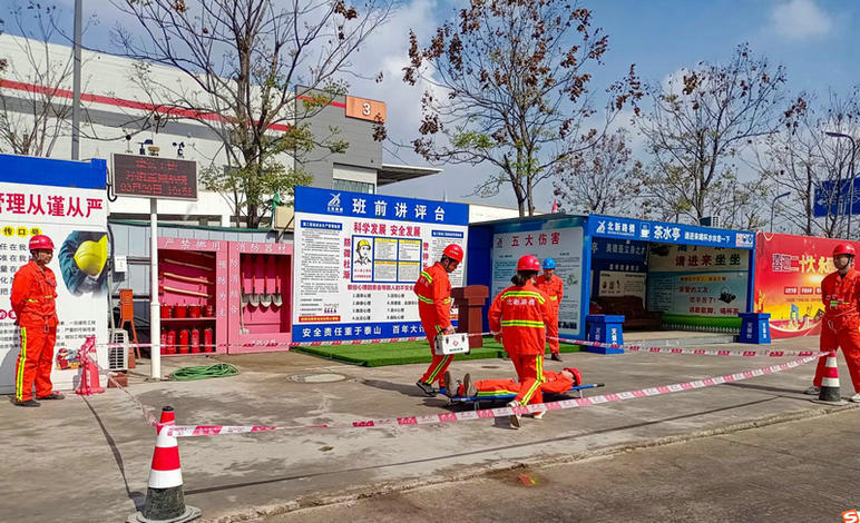 演練過程中,全體成員各司其職、緊密配合,嚴格按照既定科目實施演練,并在演練結(jié)束后分析得失、總結(jié)不足。在北新投資公司、業(yè)主方、監(jiān)理單位的大力指導下,本次演練圓滿結(jié)束,成功驗證了專項應(yīng)急預(yù)案的全面性、處置流程的合理性以及各項處置工作的有效性,鍛煉了各應(yīng)急小組人員的心理素質(zhì),提高了項目全員安全意識和應(yīng)急處置能力,完善了項目安全應(yīng)急體系,為德辰項目安全平穩(wěn)運行打下了堅實基礎(chǔ)。