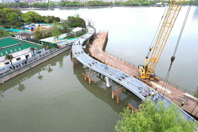 該橋是宜興市串聯(lián)新老城區(qū),拓展水上空間的一項(xiàng)重點(diǎn)民生工程,對(duì)提升城市空間功能的活力,豐富廣大市民空間交往、審美、人文和藝術(shù)體驗(yàn),打造具有宜興特色的一流濱水空間,形成具有水鄉(xiāng)特色和文化魅力的城市定位具有重要意義。