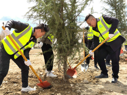 4月5日,中鐵二十一局四公司西藏片區(qū)項(xiàng)目黨支部聯(lián)合拉薩市達(dá)孜區(qū)塔杰鄉(xiāng)政府開展“我在西藏有棵樹”主題植樹活動(dòng),為當(dāng)?shù)匦绿砹艘荒ňG。