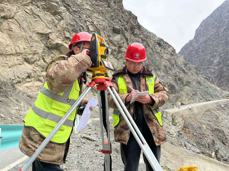 圖為市政路橋公司第一筑路奎屯河老虎口大橋項目正在使用全站儀進行3#墩柱墩位線復(fù)核作業(yè),進一步核對墩位數(shù)據(jù)無誤,為后續(xù)的澆筑作業(yè)奠定基礎(chǔ)。(王明浩攝) (3)