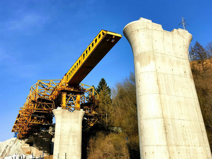 4月23日,隨著沈白高鐵吉林段TJ-6標(biāo)湯河3號(hào)大橋首孔長(zhǎng)32.6米、寬12.6米、重達(dá)744噸的混凝土現(xiàn)澆梁張拉完成,移動(dòng)模架的順利過(guò)孔,標(biāo)志著大橋的現(xiàn)澆梁施工全面展開(kāi)。