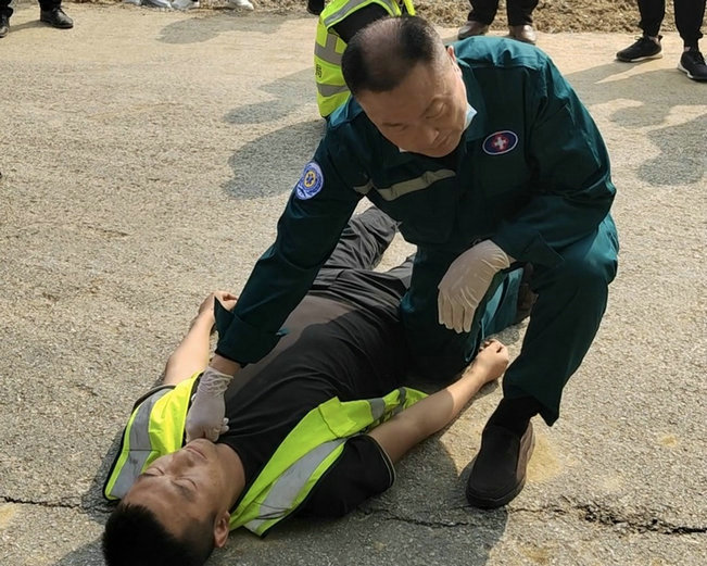 此次演練成立應(yīng)急救援、通訊聯(lián)絡(luò)、后勤保障、安全警戒、醫(yī)療救護五個小組,模擬因連續(xù)暴雨南涑河水位上漲導(dǎo)致項目橡膠壩圍堰即將決口,項目部在接到險情報告后,立即啟動應(yīng)急預(yù)案,各小組奔赴決堤現(xiàn)場展開救援處置工作。演練結(jié)束后,臨沂城區(qū)醫(yī)院的專業(yè)醫(yī)生講解傳授了人員溺水和骨折的現(xiàn)場急救知識。