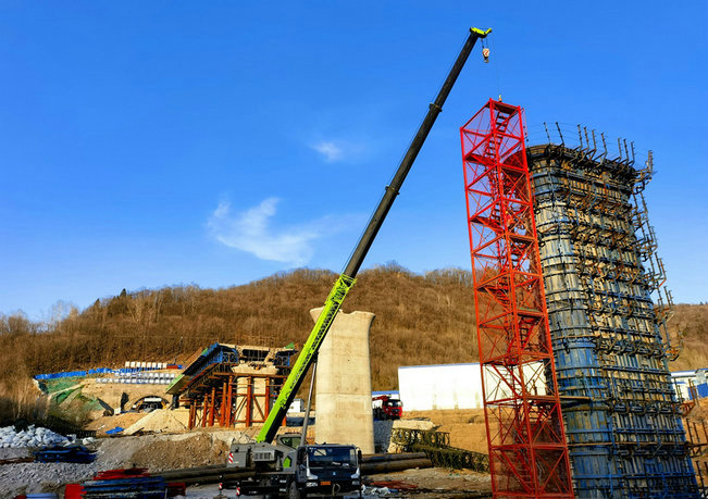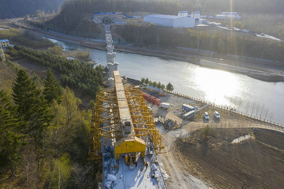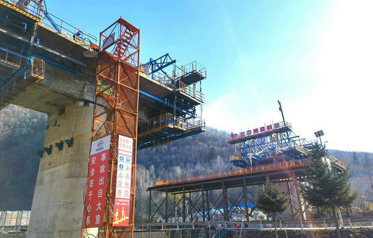 當(dāng)天下午,筆者一行翻山越嶺驅(qū)車100多公里來到了沈白高鐵吉林省撫松縣施工地段。跨越渾白鐵路、X096公路、湯河,穿過雙河電站蓄水庫區(qū)的湯河1、2、3號大橋施工現(xiàn)場映入眼簾。筆者看到,經(jīng)過20多天的營業(yè)線封鎖施工,跨越渾白鐵路的三座大橋正在進(jìn)行緊張的移動模架、掛籃 等施工作業(yè)。其中,湯河1號和2號大橋跨渾白鐵路營業(yè)線鋼構(gòu)防護(hù)棚建設(shè)已經(jīng)進(jìn)入了收尾階段。他們克服地處既有鐵路高邊坡、緊鄰湯河、安全風(fēng)險高等不利因素,制定了詳細(xì)的施工組織方案和應(yīng)急預(yù)案。調(diào)集了精兵強(qiáng)將30余人,并進(jìn)行了營業(yè)線施工安全知識的培訓(xùn)和關(guān)鍵工序的模擬演練,責(zé)任落實到崗到人,全力以赴搶進(jìn)度。“施工過程中,我們嚴(yán)格執(zhí)行標(biāo)準(zhǔn)化作業(yè)不走樣,對鄰近線路作業(yè)的砼泵車、汽車吊等機(jī)械一機(jī)一人防護(hù),施工現(xiàn)場進(jìn)行了“硬隔離”,筑起了安全屏障。目前兩座跨線鋼構(gòu)防護(hù)棚基本完成,為五月上旬橋梁跨線部分的掛籃懸臂澆筑段施工贏得了寶貴時間”蓬頭垢面一臉疲憊的項目副經(jīng)理兼分部經(jīng)理郭曉斌欣慰地說。