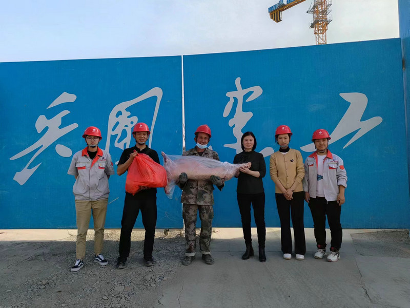 烏魯木齊訊(陳君)2023年五一國際勞動(dòng)節(jié)當(dāng)日,由兵團(tuán)五建工會(huì)主席帶隊(duì)的慰問小組,來到東方茂項(xiàng)目施工現(xiàn)場,為五一期間仍堅(jiān)守在施工一線的員工送去了羊肉、豬肉等慰問品和滿滿的節(jié)日祝福。