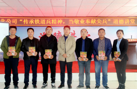 活動最后,公司黨委書記韓福堂現(xiàn)場為職工“送吉祥”,贈送書籍《中國鐵道風景線》。韓福堂講到,“西北公司全體干部職工要進一步修德進業(yè),牢記鐵軍歷史,弘揚鐵軍精神,久久為功,推動公司做大做強。”