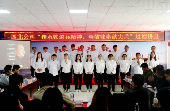 10月16日上午,中國鐵建大橋局西北公司舉辦了以“傳承鐵道兵精神,當敬業(yè)奉獻尖兵”為主題的道德講堂活動。此次活動共分為“省自身”“學模范”“講故事”“頌經(jīng)典”“談感想”“唱歌曲”和“送吉祥”七個環(huán)節(jié)。公司黨委書記韓福堂、總經(jīng)理赫宏偉等班子成員,公司機關各部室負責人,各基層項目書記、團委負責人及銀昆項目全體職工參加了此次活動。