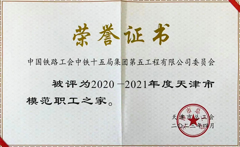日前,天津市總工會公布2020—2021年度天津市模范職工之家評選結(jié)果,中國鐵路工會中鐵十五局集團(tuán)第五工程有限公司委員會榜上有名,這主要得益于他們從五個維度不斷推進(jìn)職工之家建設(shè)。