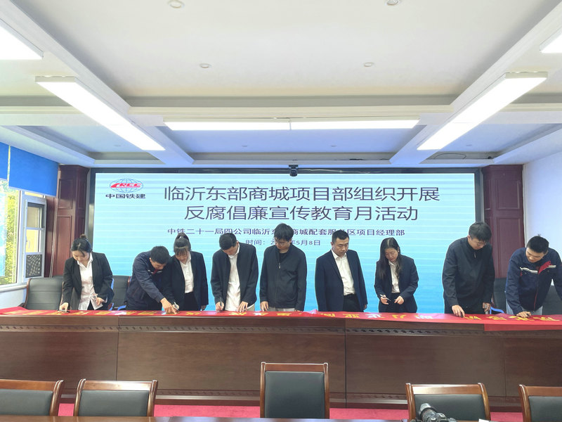 5月8日,中鐵二十一局四公司臨沂東部商城配套服務區(qū)項目舉行反腐倡廉宣傳教育月活動啟動儀式,扎實開展以“強化紀律建設 樹牢規(guī)矩意識 助力企業(yè)高質量發(fā)展”為主題的反腐倡廉宣傳教育月系列活動。