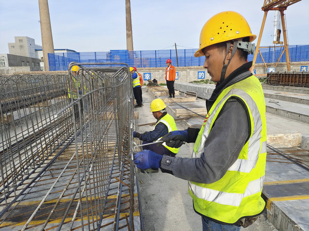 圖為:5月11日九師白楊市-烏拉斯臺公路項目始終保持大干快上勢頭施工員、安全員認(rèn)真做好每一道崗,在保障安全、質(zhì)量的前提下,推動項目建設(shè)全面提速,確保如期完成項目年度施工目標(biāo)。圖為工人綁扎鋼筋 王敏慧攝
