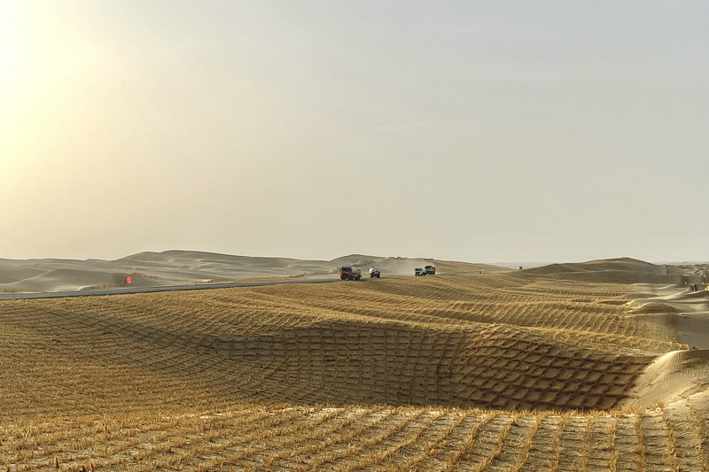 38團(tuán)訊(通訊員 崔振杰)5月15日,北新路橋集團(tuán)國際工程事業(yè)部第二師38團(tuán)至塔中沙漠公路項目上自卸車來回奔忙。該項目目前在沙漠中設(shè)有兩處營地點,無信號、無水電,一切補(bǔ)給靠外部營地點運輸,但就是在這樣越來越惡劣的變化中項目一點一滴推進(jìn)成型。如蒼龍潛地,飛沙走石中、艷陽高照時、萬里晴空下,自卸車往來奔忙、施工員駐足指揮、草方格徐徐鋪展,靜止與運動的平衡中“沙漠黃龍”直搗天際。