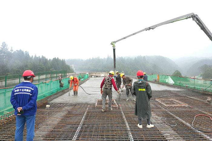 鐵路工程建設網(wǎng)訊(通訊員趙丹妮)5月10日,由中鐵十五局三公司承建的貴州劍黎高速公路TJ-8標八舟河樞紐互通最后一聯(lián)現(xiàn)澆箱梁順利完成澆筑,標志著管段重難點工程取得新進展。
