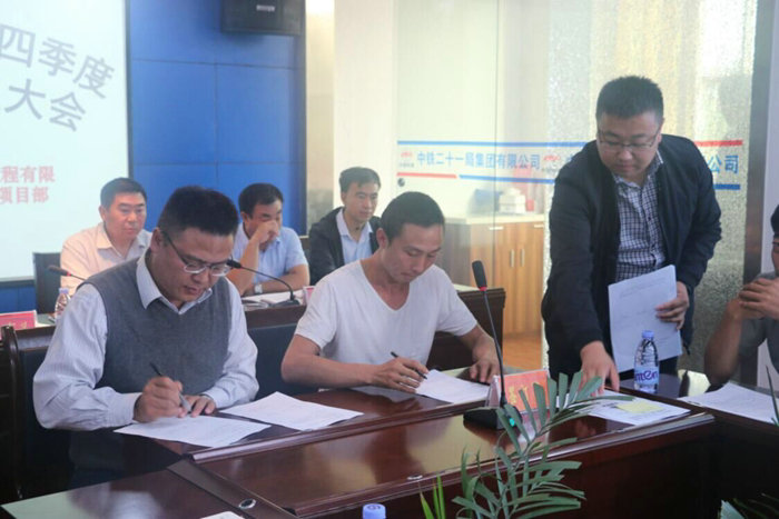 根據(jù)會(huì)議議程,項(xiàng)目經(jīng)理洪富義分別與各勞務(wù)隊(duì)負(fù)責(zé)人簽訂了大干目標(biāo)責(zé)任狀,項(xiàng)目書(shū)記陳建良作了動(dòng)員講話(huà)。洪富義對(duì)開(kāi)展勞動(dòng)競(jìng)賽活動(dòng)作了部署安排,要求全體參建人員要以強(qiáng)烈的緊迫感、危機(jī)感和責(zé)任感,攻堅(jiān)克難,齊心協(xié)力,在保證安全質(zhì)量的前提下,全面掀起大干熱潮,為完成產(chǎn)值和各項(xiàng)節(jié)點(diǎn)目標(biāo)共同努力。
