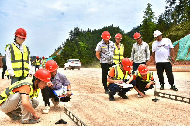 本次交驗的里程為K69+390-K70+419段,共1029米。為確保首段路床順利交驗,該項目團隊超前謀劃、科學(xué)部署,成立了路床交驗小組,提前做好分工,重點圍繞施工組織、資源配置、技術(shù)方案、雨季施工等環(huán)節(jié)開展攻堅。開工前,他們開展相關(guān)專題技術(shù)培訓(xùn)會,多次組織現(xiàn)場管理人員及勞務(wù)班組進行技術(shù)交底和安全交底,明確交驗程序和施工安全質(zhì)量控制指標。同時,制定網(wǎng)格化管理模塊,管理人員分段、分片盯控,責任到人,確保工作落到實處。施工中,他們以“品質(zhì)工程”為核心,緊抓路基關(guān)鍵工序,嚴格工藝過程管控。施工過程中,嚴格控制填層厚度、填料粒徑、壓實質(zhì)量等各項指標,確保每一道工序都符合設(shè)計、規(guī)范及驗收的標準。