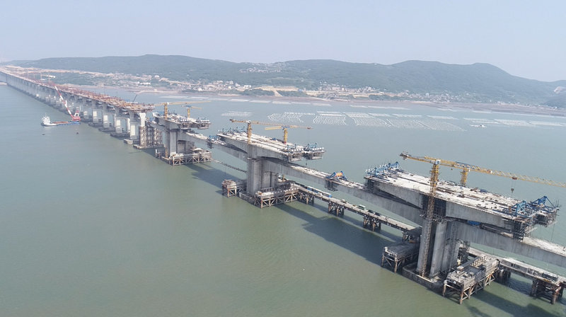 技術(shù)難度催生出橋梁建設(shè)的創(chuàng)新,激發(fā)出建橋者更大的熱情。截至2018年10月,項(xiàng)目部已獲得科技進(jìn)步獎(jiǎng)7項(xiàng)、工法22項(xiàng)、QC成果3項(xiàng)、授權(quán)專利20項(xiàng)、其中9項(xiàng)為發(fā)明專利、核心期刊發(fā)表論文30多篇。在全體參見者的共同努力下,項(xiàng)目已成功攻克了“深水有覆蓋層大直徑鋼護(hù)筒獨(dú)立平臺(tái)的搭設(shè)”“深水裸巖組合平臺(tái)的搭設(shè)與穩(wěn)固”“深水裸巖大跨長距重載棧橋的搭設(shè)”“大噸位整體鋼吊箱設(shè)計(jì)與施工”“臺(tái)風(fēng)區(qū)碼頭與后場(chǎng)配套設(shè)計(jì)與施工”等多項(xiàng)技術(shù)難題。